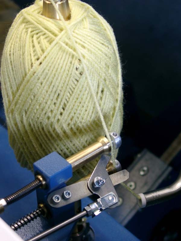Vollautomatische Knäuelmaschine. 18 Wickelpositionen. Für große Knäuel bis ca. 500g.