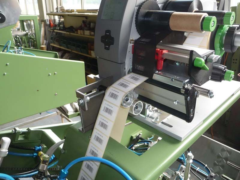Zum Falzen und Verkleben mit bedruckten Klebeetiketten der Banderolen für Knäuel. Optional mit externem Etikettendrucker für einen oder mehrere Banderolenautomaten.