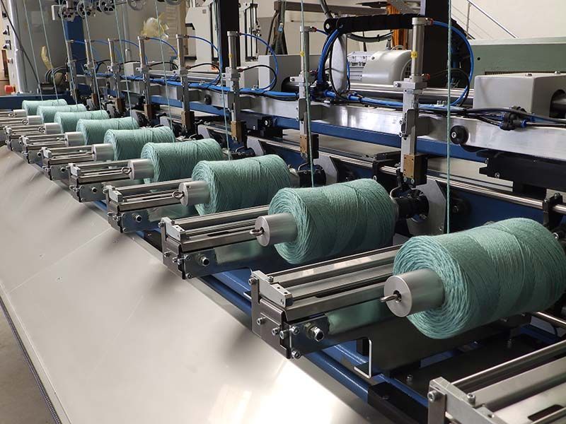Die Knäuelwickelmaschinen des Typs KW 800 sind vollautomatische Knäuelmaschinen mit wahlweise 16 oder 20 Wickelpositionen. Für Standardknäuel von 25g bis ca. 170g.